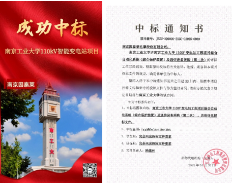 喜報(bào)丨南京因泰萊成功中標(biāo)南京工業(yè)大學(xué)110kV智能變電站項(xiàng)目