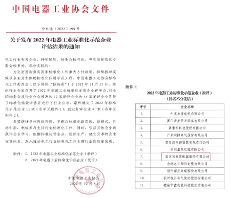 日前,中國電器工業(yè)協(xié)會發(fā)布了2022年電器工業(yè)標準化示范企業(yè)名單,南京因泰萊成功入選,獲得“2022年電器工業(yè)標準化示范企業(yè)”稱號。為全面貫徹落實國家標準化工作重大方針…